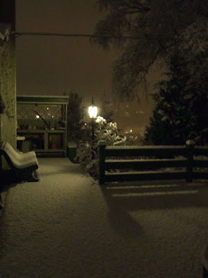 Juletreet i trillebåra såg slik ut då me kom heim att i gårkveld. Kong Vinter har pynta det med laaange istappar som har dryppa frå takrenna og det ga eit utruleg flott lys! Men eg lurar litt på kva tid me får laus att lysa… kanskje til våren ein gong…?